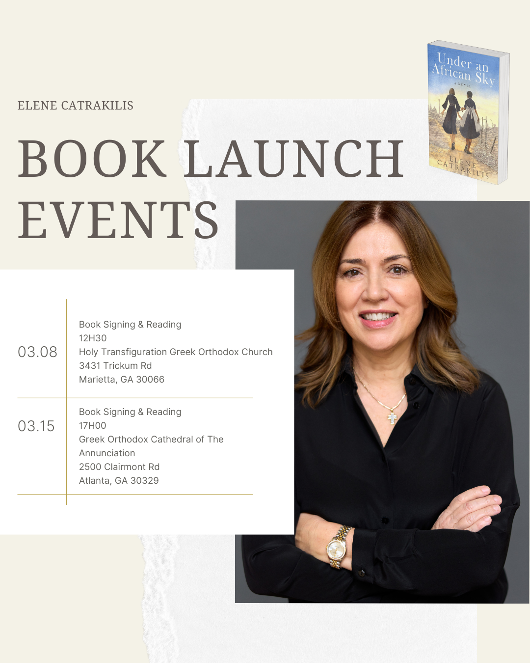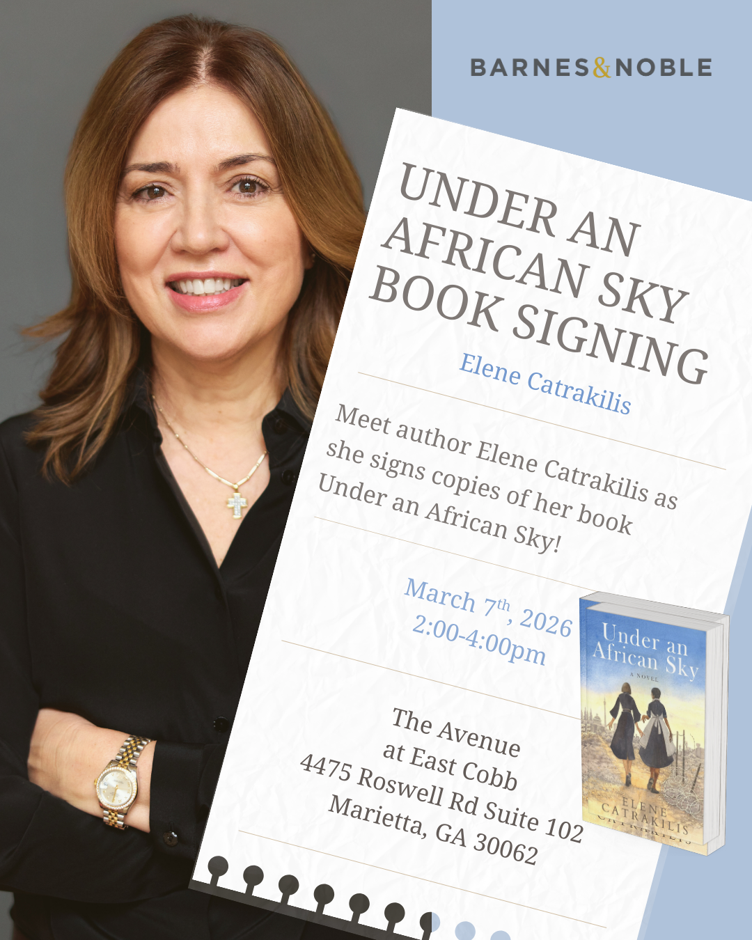 Meet author Elene Catrakilis as she signs copies of her book Under an African Sky